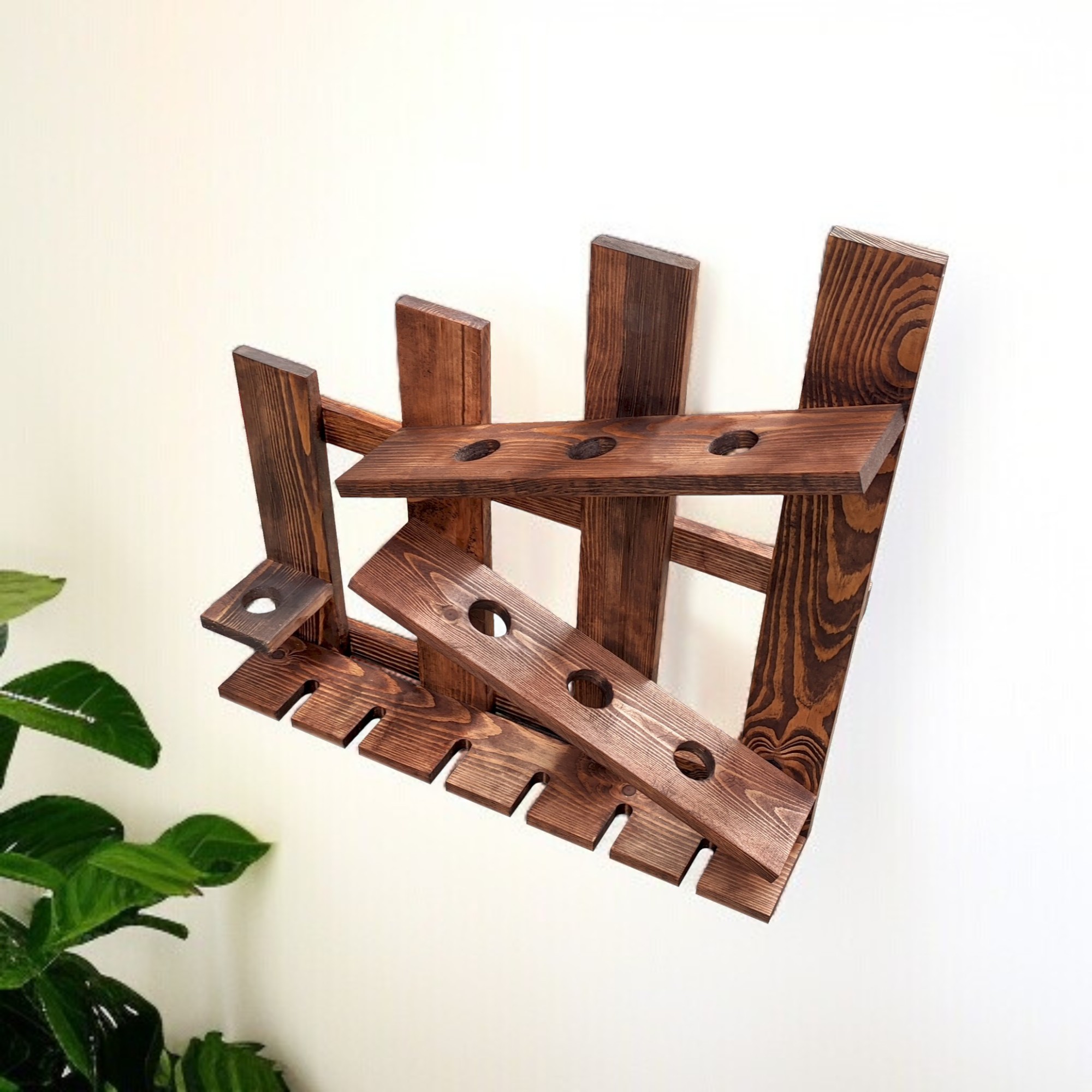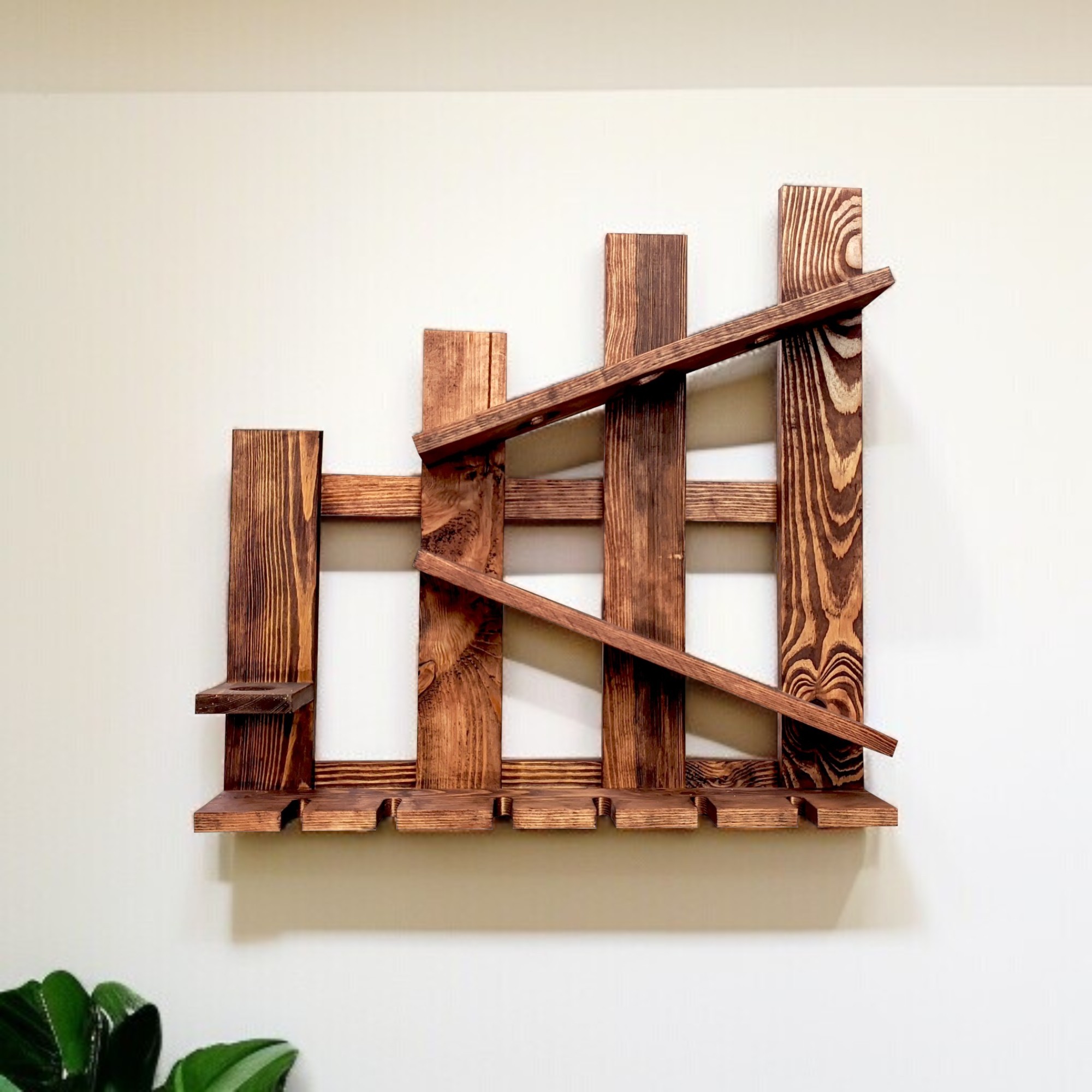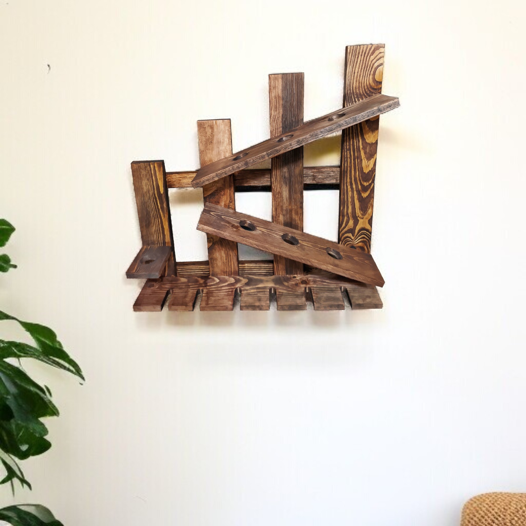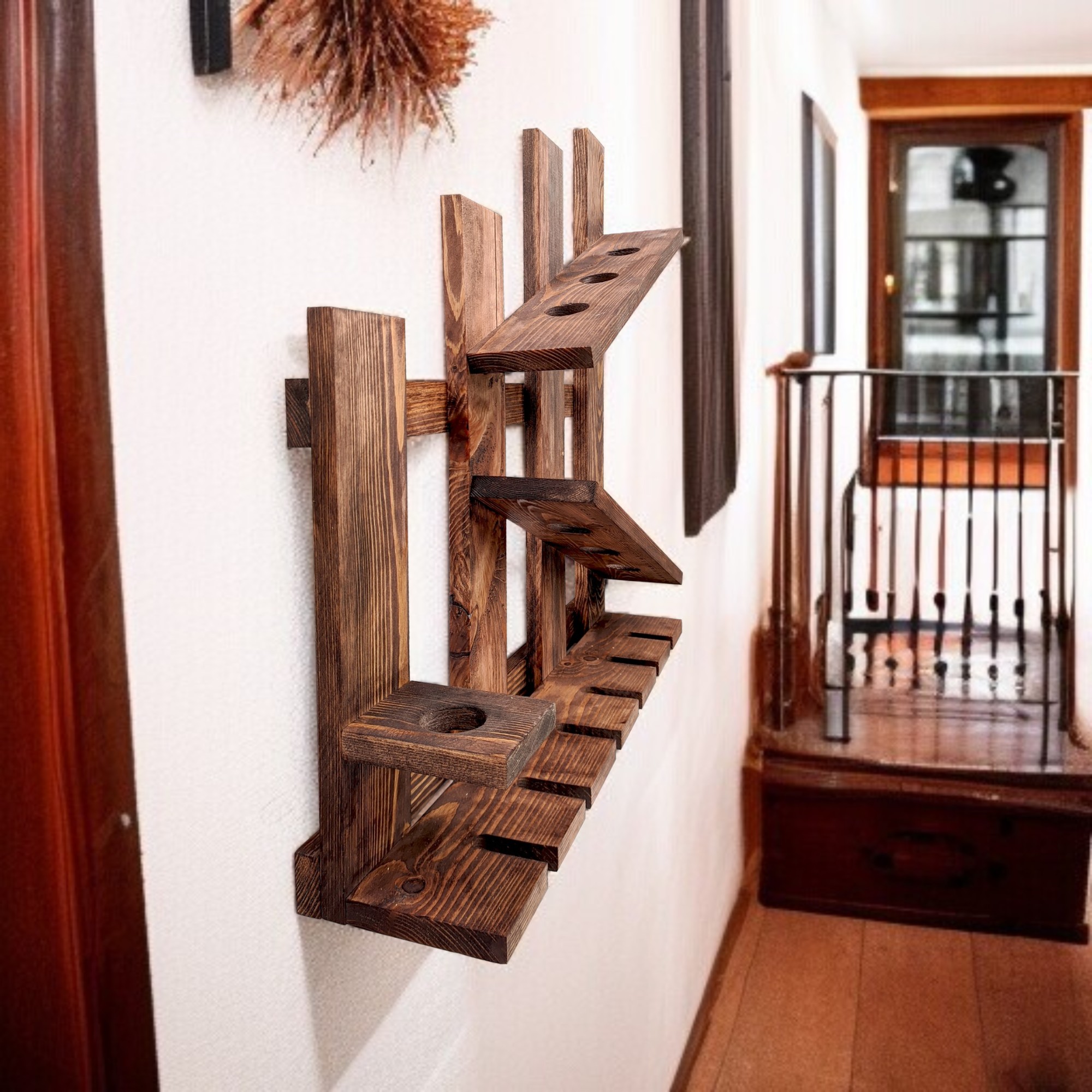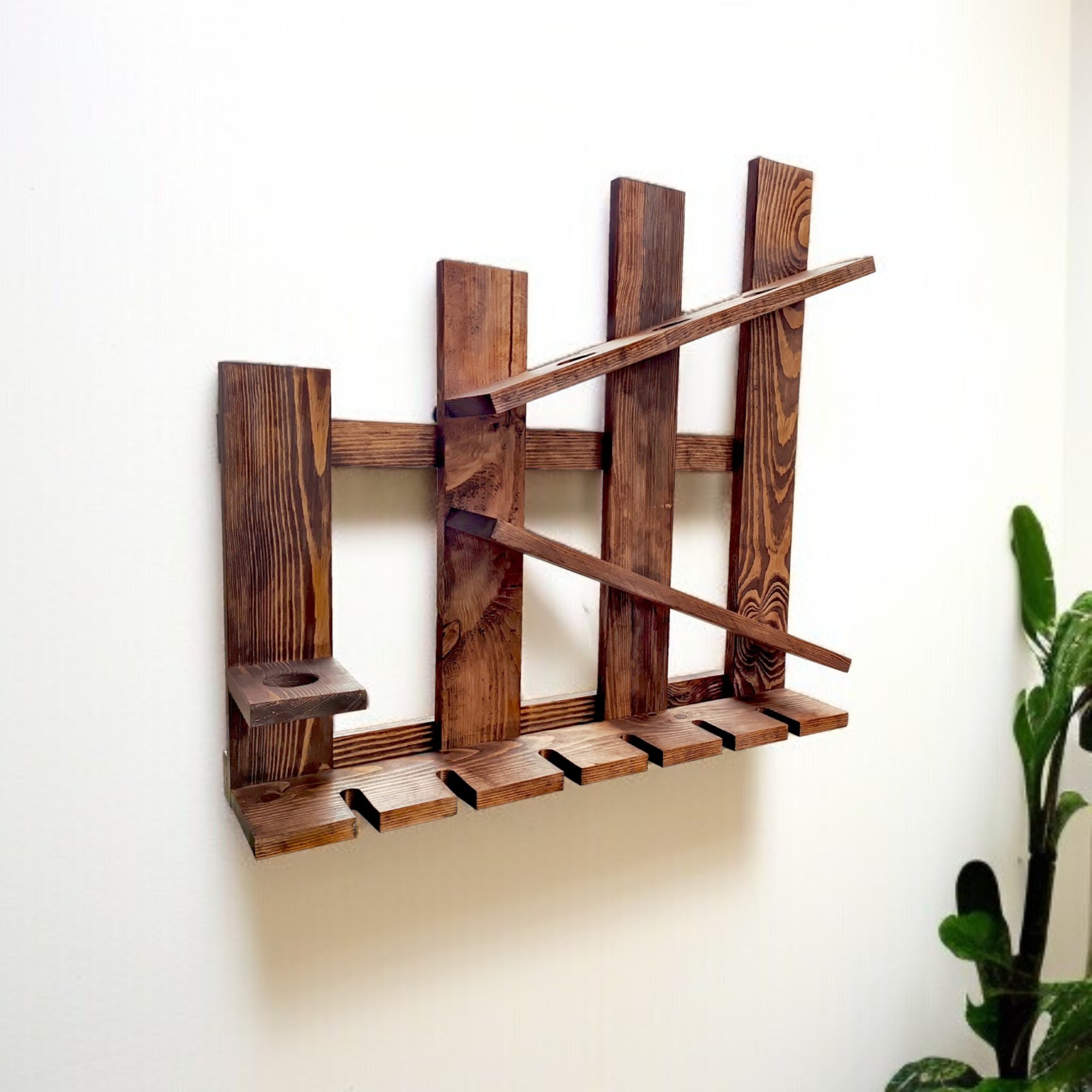 Evinizde sıcak ve doğal bir atmosfer yaratmak ister misiniz? El yapımı bu rustik ahşap şaraplık, estetik ve işlevselliği bir arada sunar. 7 şarap şişesi ve 6 kadeh için özel olarak tasarlanan bu duvar ünitesi, bar köşenize şık bir dokunuş katar.
